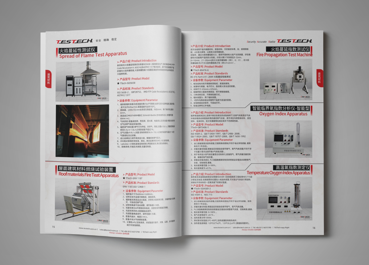 泰思泰克(蘇州)檢測儀器科技有限公司多年從事并致力于高端阻燃測試設(shè)備的研發(fā)、生產(chǎn)、銷售及技術(shù)服務(wù)!泰思泰克科技有限公司-擁有國際化視野-致力于提升中國火災(zāi)檢測、阻燃測試設(shè)備的技術(shù)水平。公司成立之初依托國際化的團(tuán)隊(duì)、美國技術(shù)輸入及進(jìn)口傳感器資源既以中高端品牌介入中國市場為中國客戶提供安全、精確、穩(wěn)定的檢測儀器及解決方案!經(jīng)過多年的沉淀和積累,泰思泰克深入掌握所有燃燒測試及安全相關(guān)技術(shù)。公司在煙氣密度分析、煙氣毒性分析、燃燒熱釋放測量技術(shù)、熱輻射供火的安全性技術(shù)、標(biāo)準(zhǔn)火焰的穩(wěn)定性控制、火焰熱量及溫度的校準(zhǔn)系統(tǒng)等相關(guān)技術(shù)均達(dá)到國際領(lǐng)先水平。