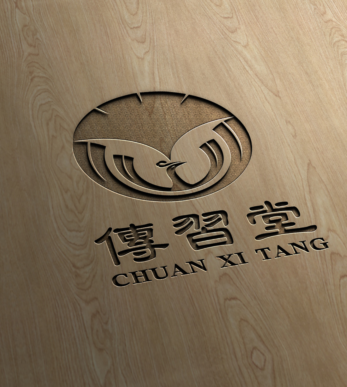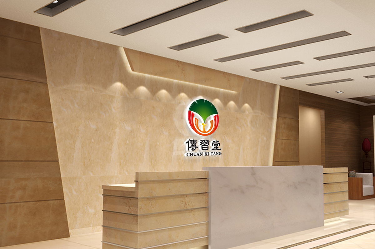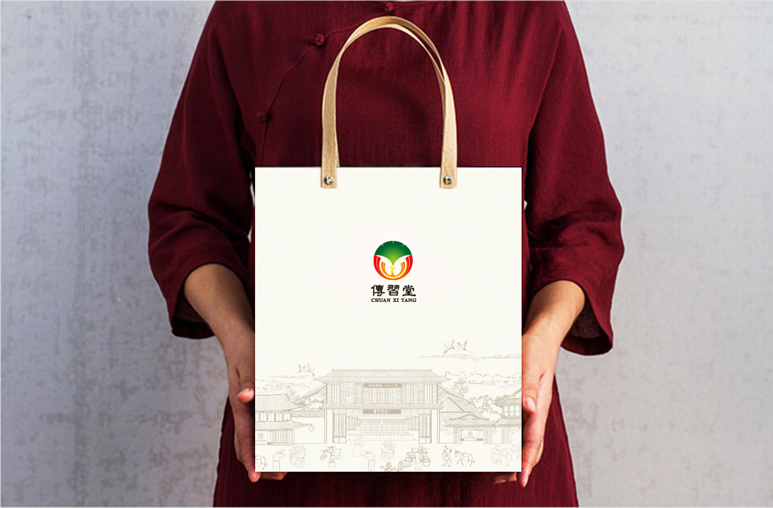傳習堂考慮到此款藥店logo設計是藥房門店使用寓意一定要好,圖案上半部分為銀杏葉代表健康長壽,銀杏的壽命很長寓意長命百歲,壽比南山之意,同時銀杏為愛心造型,寓意多子多福,圖案下半部分為火鳳凰,寓意鳳凰涅磐,欲火重生,寓意重生代表新生、積極、向上的正能力,綠色的銀杏葉和紅色火鳳凰視覺沖擊力強。
