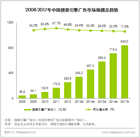 2013年中國網絡廣告市場規模達1100億,同比增長46.1%