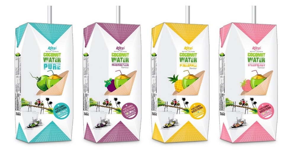 Rita的標(biāo)簽創(chuàng)意來自具有越南特色和辨識度的斗笠(笠帽),而東南亞的椰子也久負(fù)盛名,兩者結(jié)合能清晰直觀地向消費者表達(dá)地標(biāo)性產(chǎn)品。
