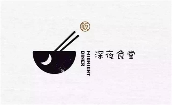 深夜食堂LOGO設(shè)計標(biāo)志是一個碗筷的造型,上面加上了篆書的飯字的品類屬性,碗上加入月牙的造型,顯得LOGO比較有意境。