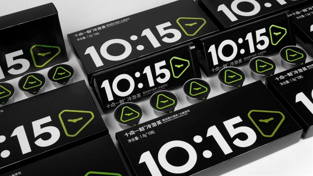 除去農產品,中國各式各樣的茶葉品牌也在近幾年卯足了勁兒改革創新,力求從千年文化積淀中脫胎換骨,走進年輕一代的心。聚焦于快速發展的冷泡茶市場,采云間憑借16年積累的先進技術,率先推出了十點一刻冷泡茶 · 綠茶,并憑借其獨特的“10:15”數字標志從傳統茶品牌的中文字標中脫穎而出,顯得格外年輕時尚。冷泡茶的主要消費場景為戶外,因此包裝設計必須充分考慮便攜性、安全性以及辨識度,同時綠茶還要考慮保鮮,于是密封的鋁箔罐成為不二之選。最終,一個基于三角茶包造型、結合時針分針提煉的視覺符號,成為十點一刻的視覺焦點。整體包裝設計標新立異,顛覆泡茶在年輕人心中的“老干部”形象,令人過目不忘。