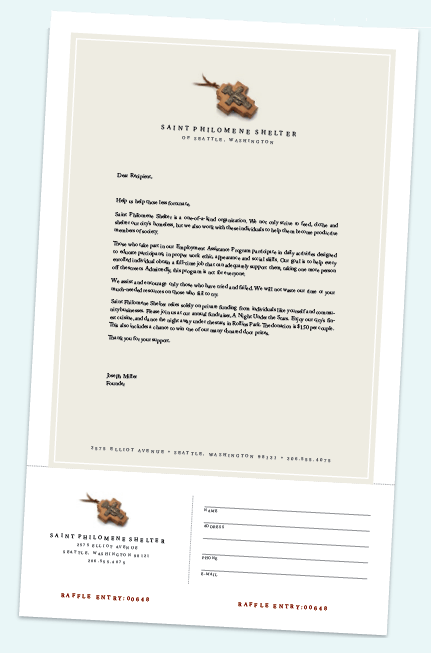 圣菲洛米彌收容所是一個為無家可歸的人服務(wù)的慈善機構(gòu),它會定期通過舉辦一些活動來籌集善款。我們已經(jīng)為該機構(gòu)設(shè)計了兩用式的宣傳單張,該單張傳達了該機構(gòu)的信譽及權(quán)威,同時,在該單張下方有一張可撕式的回復(fù)卡片(已經(jīng)在卡片與上方內(nèi)容的分界地方預(yù)先打了排孔以方便撕下)。我們是如何設(shè)計的? |