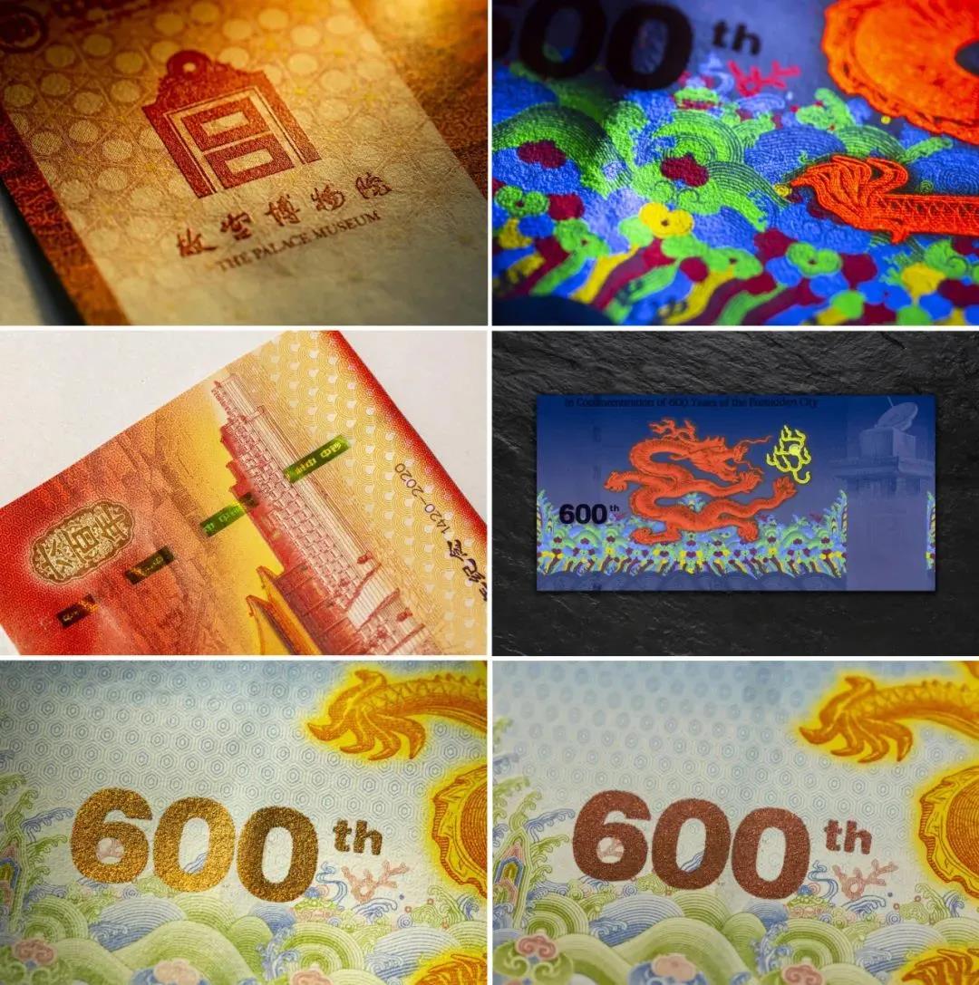 紫禁城建成600年紀念券。值得一說的是,紀念卷采用了十余種印刷技術,例如江崖海水紋采用膠印專色印刷,在不同的環境中呈現出不同的炫彩效果。