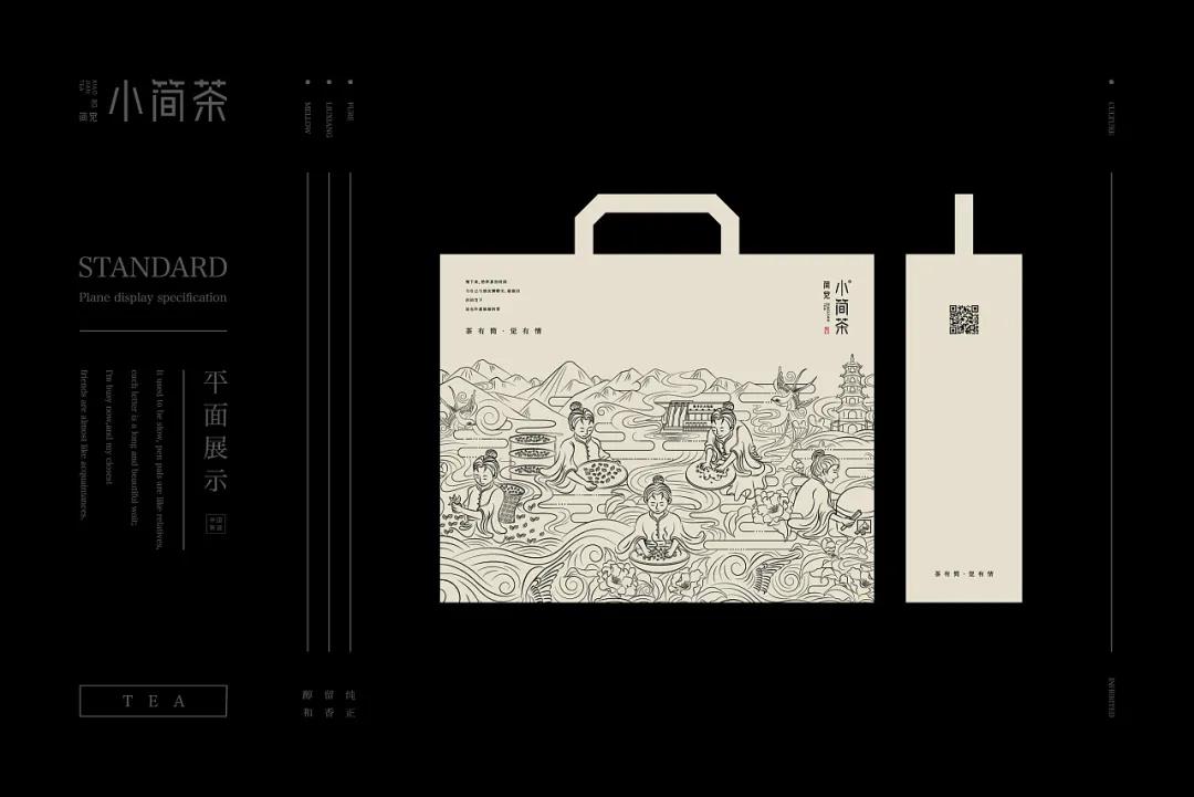 小簡茶提倡慢下來,給自己一杯茶的時間,與自己與親人朋友聊聊天、敘敘舊。LOGO以純文字為主,字體設計具有傳統簡中式感受,將硬朗現代的骨骼變化感展現淋漓盡致,在文化感和現代活力感之間取得平衡。筆畫間的倒圓口增添了靈動性,使得整體LOGO帶給人輕松的感覺。品牌色使用具有力量感的品質黑和具有文韻舒適感的淺茶金,給予消費者溫暖的、值得信賴的、經典的感受。