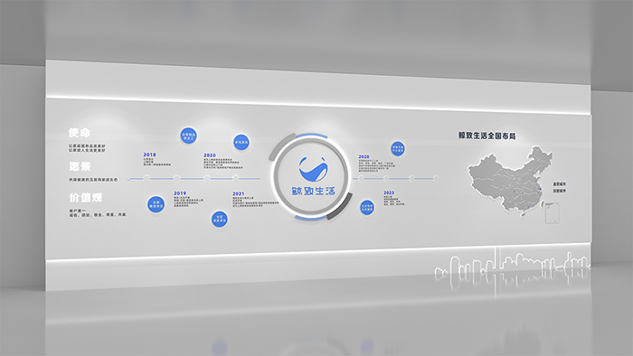 在設(shè)計文化墻之前,我們需要首先定位企業(yè)文化,并構(gòu)思如何整體布局。同時,將主體與子區(qū)域顯示的內(nèi)容相結(jié)合,完成企業(yè)經(jīng)營理念和服務(wù)理念的核心內(nèi)容,同時色彩與照明與文化墻巧妙融合。
